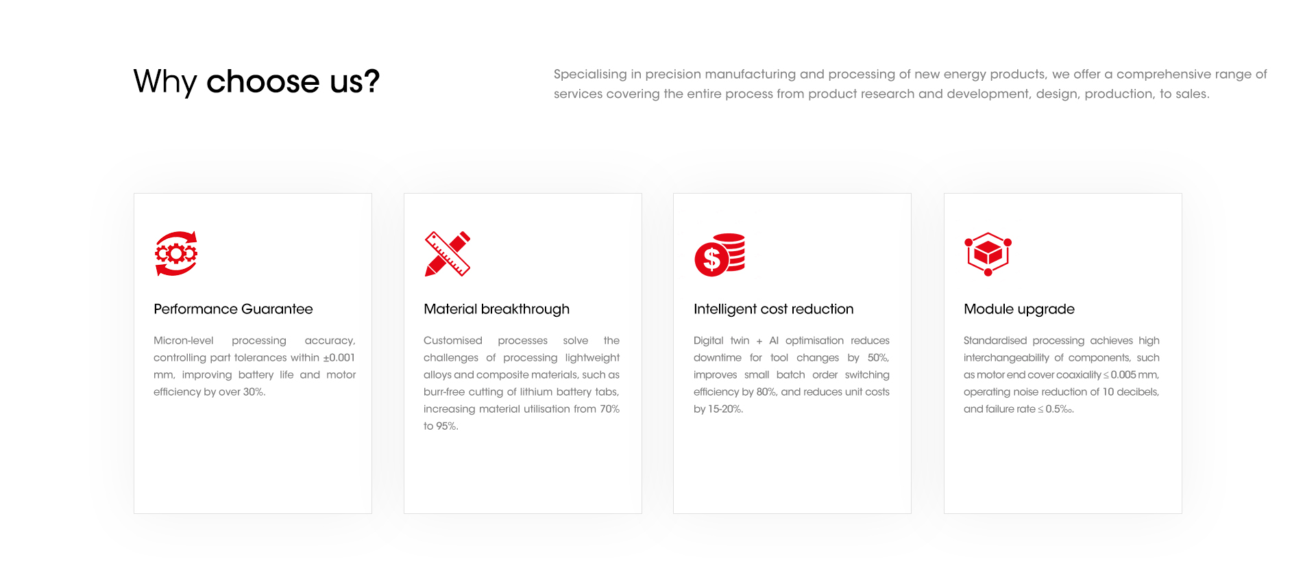 Specialising in precision manufacturing and processing of new energy products, we offer a comprehensive range of services covering the entire process from product research and development, design, production, to sales.